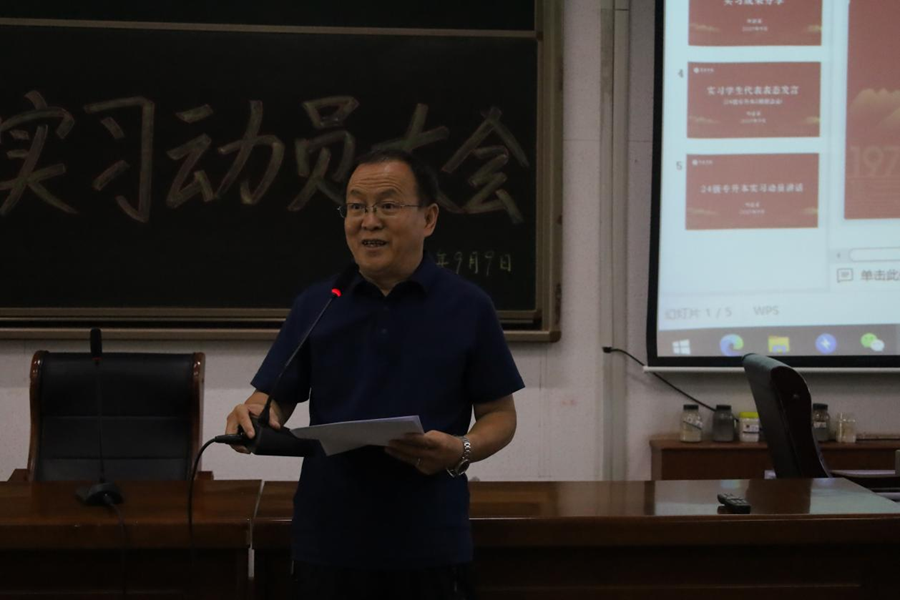 最后,副主任李红兵老师对24级专升本学生实习工作做了安排部署,对实习纪律与安全做了特别强调,要求学生严格遵守国家法律法规,实习单位的规章制度和学校的实习纪律,注意人身和财产安全,务必时刻保持警惕,注意交通、住宿与日常出行安全,保管好个人财物,防范各种风险,实习期间要随时与指导老师、辅导员保持联系,遇到问题及时汇报,希望同学们以饱满的热情、坚定的信心和踏实的行动投入到实习工作中去,在实践中书写属于自己的精彩篇章。